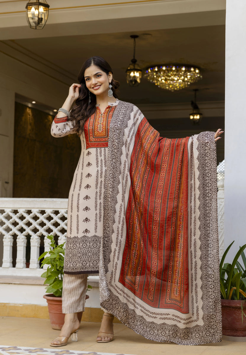 Our 3 Piece Ivory Suit Set In Pure Viscose Fabric,